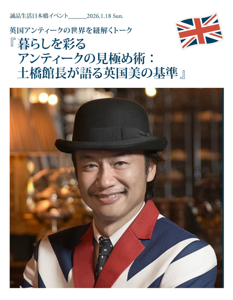 本物の英国アンティークが持つ美意識や、現代の暮らしを豊かに彩るヒントを土橋館長がたっぷりとお話しします!