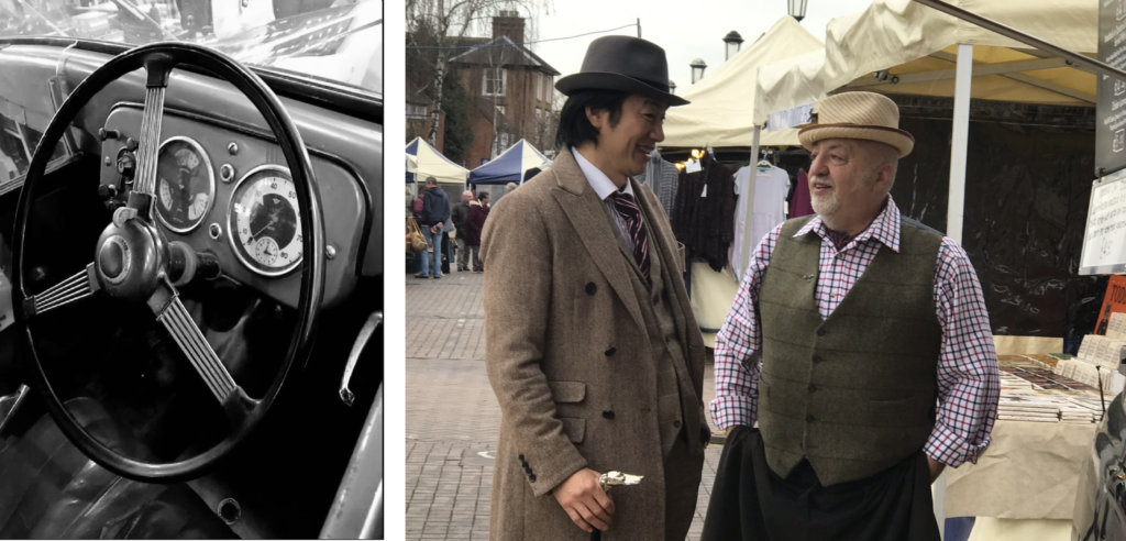 僕は英国アンティーク探しの旅の途中で、16世紀チューダー朝の建物がそのまま残されたコッツウォルズ地方の町にたどり着いた。その日はイギリスらしいどんよりした天候であったが、広場にはマーケットが開かれ、賑わいを見せていた。その中、偶然にもカフェに改造されたロンドンタクシーと出会った。その瞬間、僕の心は一瞬で奪われた。そこで、カフェのオーナーにその理由を尋ねることにした。