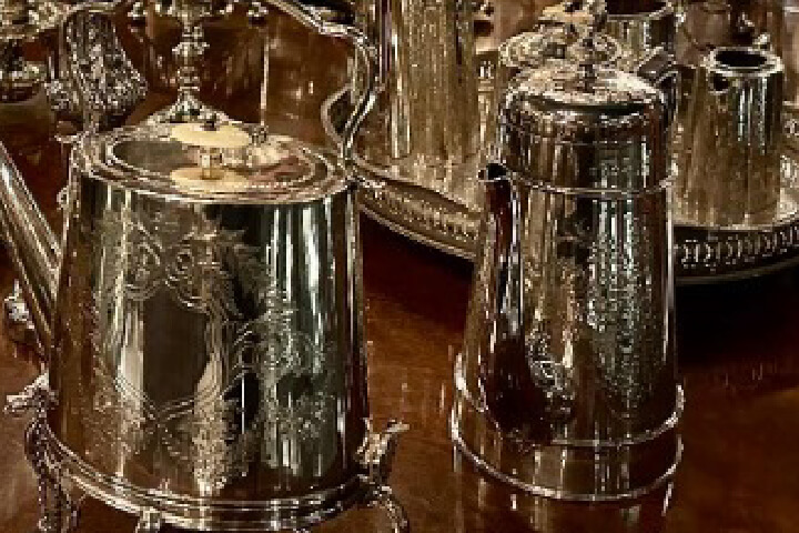 BAM鎌倉、館長の土橋です。当館2階のジョージアンルームの見どころは、銀器の変遷です。ティーケトル、燭台、アフタヌーンティースタンドなど多彩なシルバーを展示し、ジョージアンからヴィクトリアンへと移り変わるデザインを一望できます。また、チッペンデールといった名匠が手がけた椅子、威厳あるグランドファーザーズクロックも展示し、18世紀英国の室内文化を再現しています。さらに、英国王室御用達ジョン・ロブ・ロンドンから特別に寄贈された靴木型を地下保管室の再現し、紳士を象徴する品々も揃います。鎌倉で、英国ジョージアン時代の気品と美意識をご体感ください。
