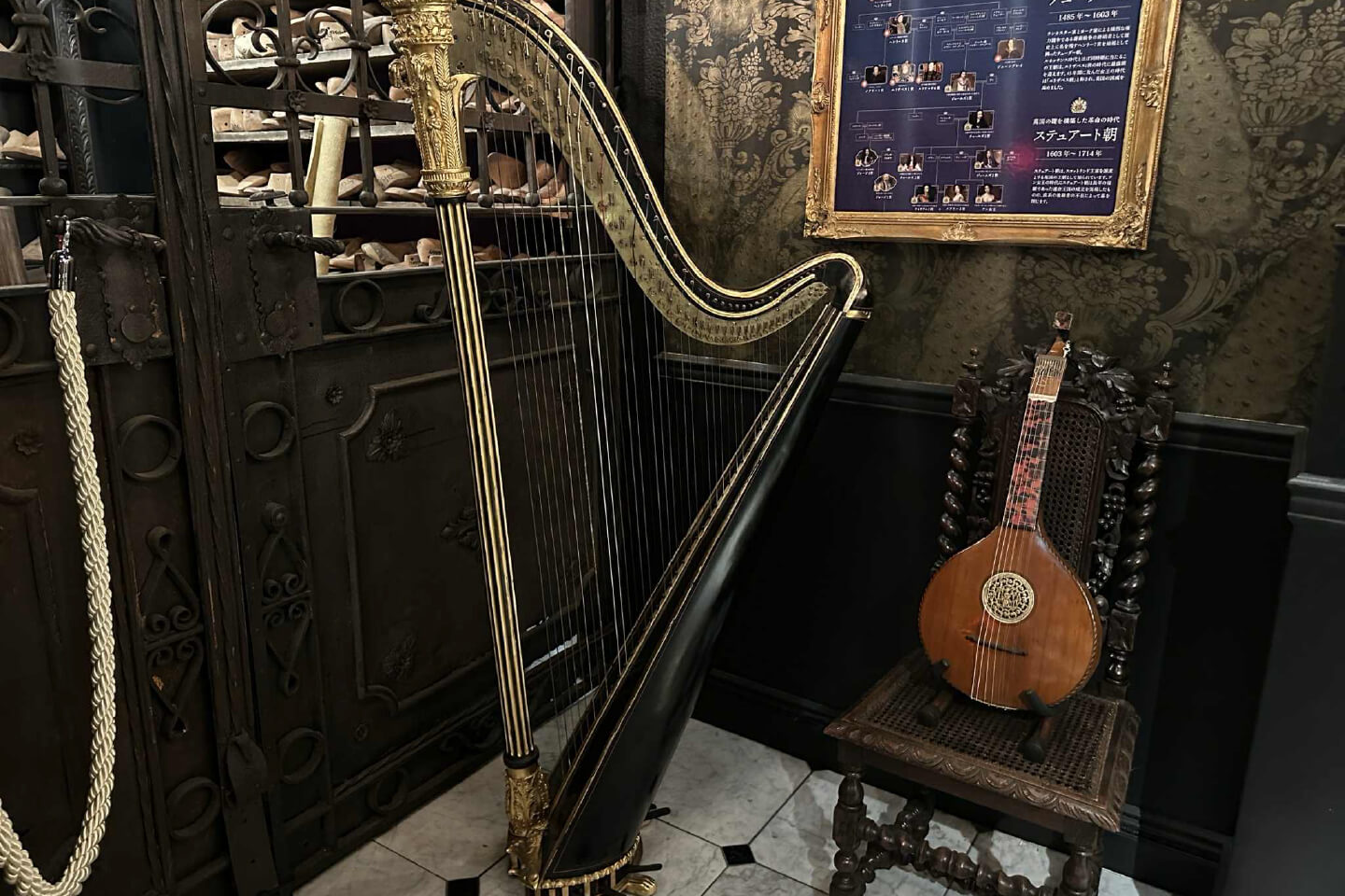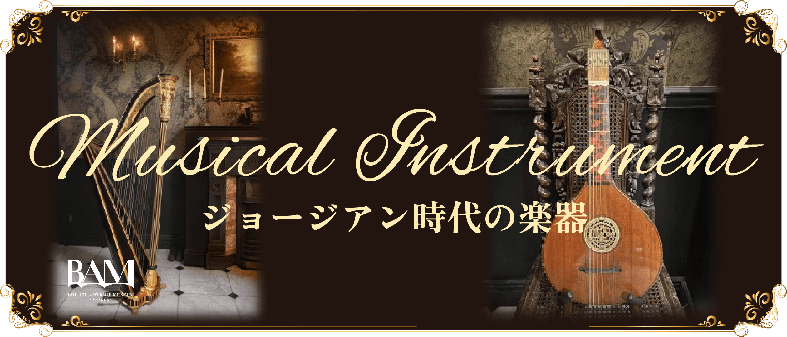 ジョージアン時代は、国王ジョージ1世から4世の治世を指し、古典主義を基盤とする建築や家具が発展しました。BAMのシルバーの展示では、ジョージアンからヴィクトリアンへと続くデザインの変遷を辿ることができます。さらに、英国御用達ジョンロブの靴木型などのアンティークを通じて、ジェントルマンの象徴をご覧いただけます。また、当時の音楽文化を伝えるハープやギターも展示され、優雅な響きを想起させます。BAMではシルバー・家具・楽器などを通じ、18世紀英国の暮らしと美意識を体感いただけます。