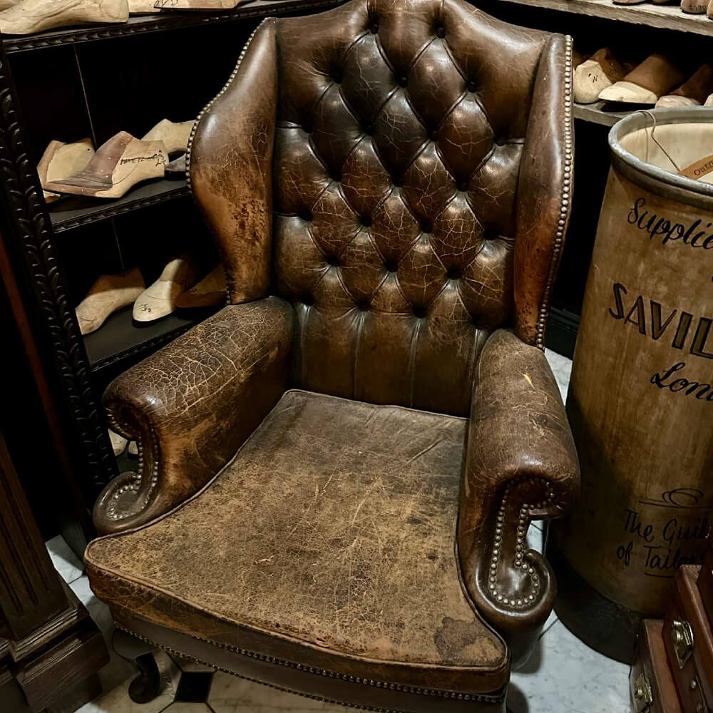 BAMでは、当時の紳士の品格と生活様式を伝える展示をご覧いただけます。中でも特筆すべきは、英国王室御用達の靴メーカー、ジョン・ロブ・ロンドンから特別に寄贈された100点に及ぶ靴の木型です。これらは通常非公開の地下保管室を再現した空間に並び、職人の道具とともに貴重なクラフツマンシップの世界を体感できます。さらに、近衛兵の制服や熊の毛で作られた高帽は王室の伝統を象徴し、皮張りのトランクやウイングバックチェアは紳士の旅や社交を彩りました。これらの展示を通じ、「格式と美意識の象徴」となった紳士の歴史を味わってください。